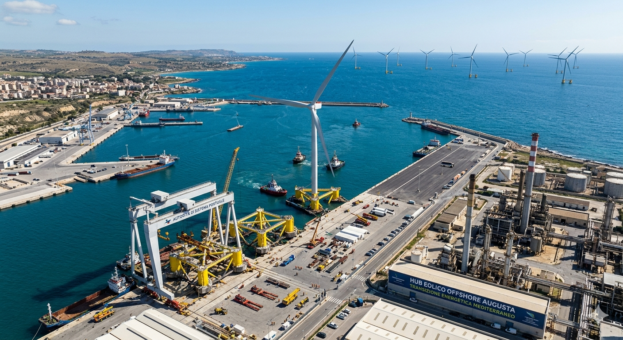 Il progetto prevede la riqualificazione di 257.000 mq. di aree demaniali, lo spazio, situato tra la zona di Punta Cugno e il Porto Commerciale è destinato a diventare la base operativa per lo sviluppo dell’eolico offshore. La scelta di Augusta non è casuale: posizione geografica: baricentrica nelle rotte del mediterraneo; fondali profondi: caratteristica tecnica per l’assemblaggio e il varo delle turbine galleggianti; infrastrutture: uno scalo che possiede la cultura industriale necessaria per gestire grandi carichi. Lo scalo si candida a diventare un hub leaderdel Mediterraneo, capace di attrarre gli attori internazionali del settore delle rinnovabili.
