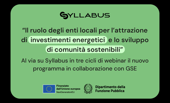 Al termine del percorso, i partecipanti acquisiranno competenze tecniche, amministrative e patrimoniali utili alla gestione degli interventi di riqualificazione energetica. Il programma rientra nel catalogo Syllabus, nell’ambito tematico “Transizione ecologica”, e consente il rilascio di un Open Badge a seguito del completamento delle attività e del superamento delle verifiche finali. Save the date: primo webinar live il 18 febbraio 2026 alle ore 11.