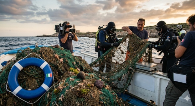 I numeri dell’operazione, presentati insieme all’anteprima del documentario “The Phantom Catch” diretto da Igor D’India, raccontano un impegno senza sosta: 156 attrezzi rimossi (tra reti a strascico, nasse e palangari) e 24 azioni di recupero mirate tra gli 8 e i 40 metri di profondità.