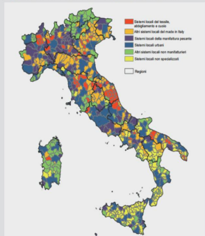 Il modello produttivo storico italiano resta solido. Sono 156 i sistemi locali specializzati nel Made in Italy (agroalimentare, tessile, pelli, legno e gioielli), aree che coprono il 30% della superficie nazionale e danno lavoro a 14 mln. di persone. Tuttavia, i dati rivelano un paradosso: pur essendo il cuore dell’identità italiana, la produttività media del Made in Italy è spesso inferiore ad altri settori, specialmente nel Mezzogiorno, dove il valore aggiunto per addetto si ferma a 34 mila euro, contro i 53 mila del Centro-Nord. Parallelamente, l’industria pesante (mezzi di trasporto, chimica, metallurgia) occupa 111 sistemi locali. La dimensione delle imprese cresce e con essa la produttività, con punte di eccellenza nel settore dei materiali da costruzione e della ceramica (distretto di Sassuolo), che vanta una produttività di 57mila euro per addetto.