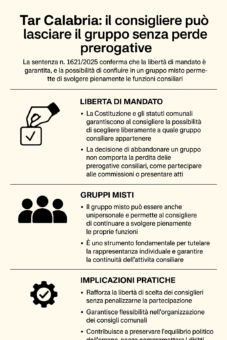 Il Tar Calabria conferma che la decisione di abbandonare il gruppo consiliare non comporta la perdita delle prerogative, garantendo la possibilità di confluire in un gruppo misto anche unipersonale