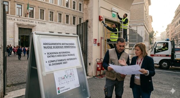 Il provvedimento, pubblicato in Gazzetta Ufficiale l’8 aprile 2026, conferma il termine ultimo del 31 dicembre 2027 per il completo adeguamento alla normativa antincendio, ma stabilisce un percorso graduale. Entro nove mesi dalla pubblicazione, le scuole dovranno infatti presentare la segnalazione certificata di inizio attività (SCIA) ai vigili del fuoco, attestando l’adozione delle prime misure essenziali di sicurezza, tra cui sistemi di allarme, illuminazione di emergenza, estintori e segnaletica.